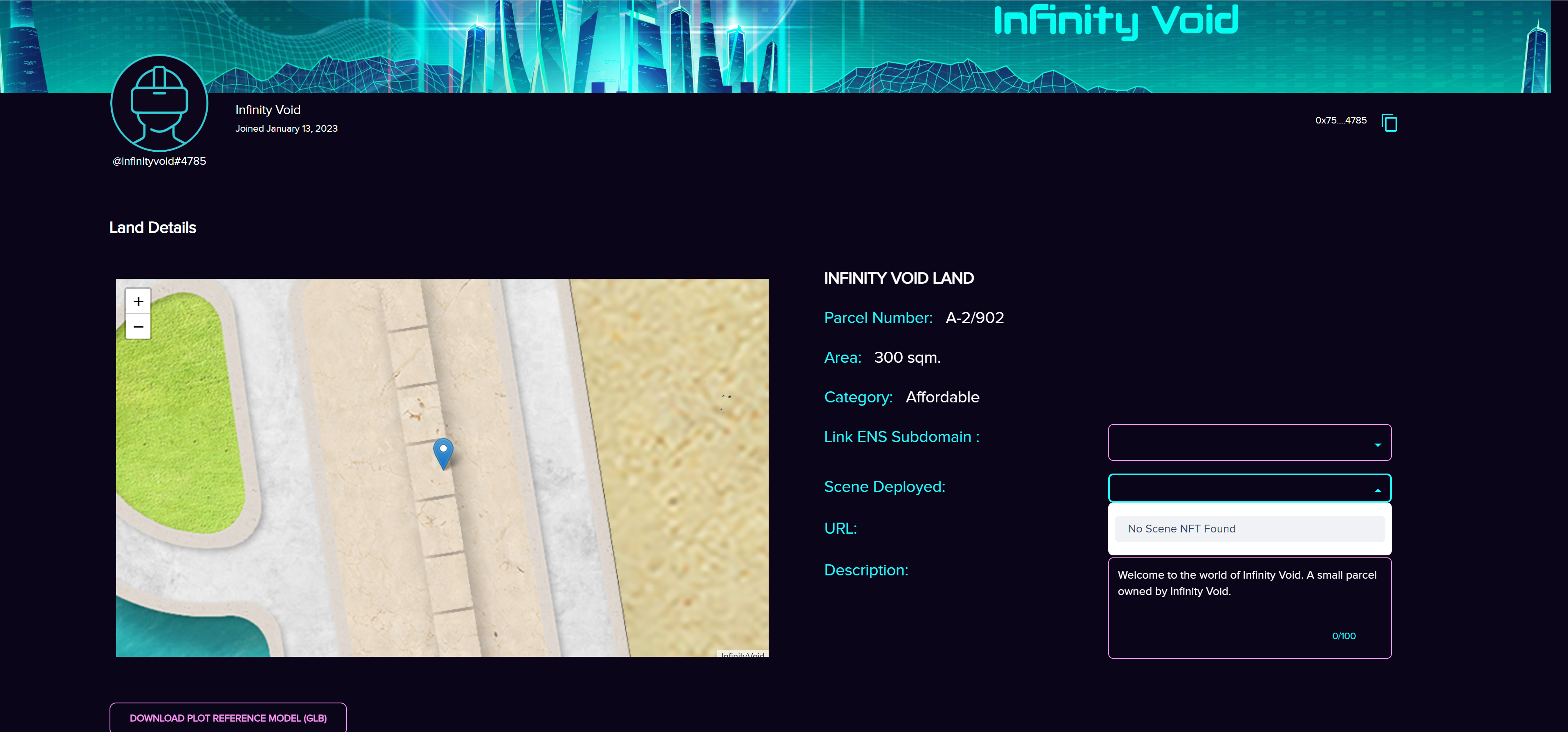 Dashboard>Virtual Land Parcel>SettingsWithin the settings page of your virtual land parcel, locate the